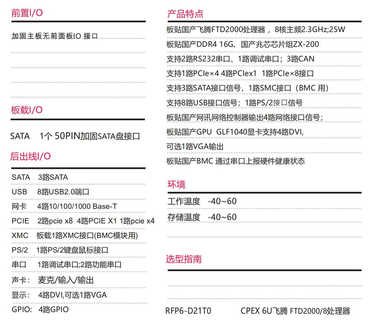采用国产飞腾处理器+ZX-200芯片组国产化设计, 6U CPEX规格。具备丰富的外围接口;设计了高效的散热系统,可显著提高处理器的浮点运算性能,以太网、PCIe、支持高带宽数据传输,满足视频采集与处理、雷达和声呐等应用对高速数据传输的要求。满足无人机、装甲车、水面舰艇等军工领域。